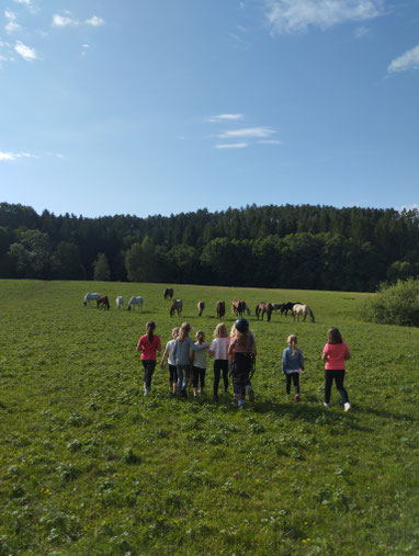 Das Angebot richtet sich an Menschen ab 3 Jahren bis ins hohe Alter. Dadurch ist der Inhalt unserer Arbeit sehr umfangreich - Naturerlebnisse mit/um/auf dem Pferd, Körperwahrnehmungen und Pferdesprache für Reitanfänger*innen, Selbsterfahrung, Begegnung mit dem Pferd und miteinander und vieles mehr.